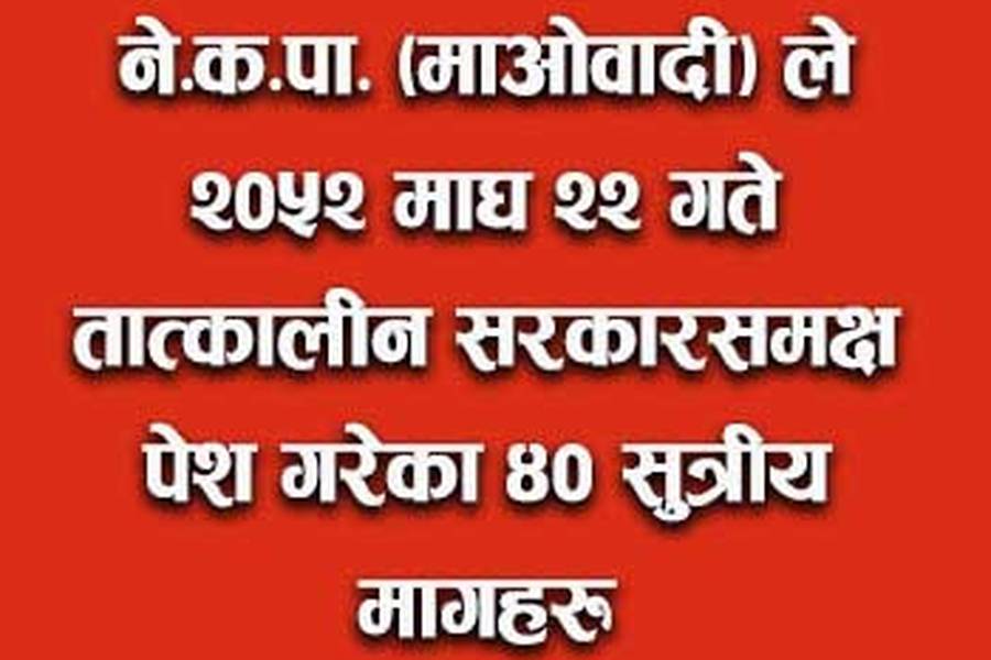 ने.क.पा.(माओवादी)ले २०५२ माघ २२ गते तात्कालीन सरकारसमक्ष पेश गरेका ४० सुत्रीय मागहरु