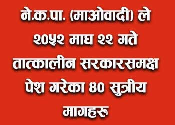 ने.क.पा.(माओवादी)ले २०५२ माघ २२ गते तात्कालीन सरकारसमक्ष पेश गरेका ४० सुत्रीय मागहरु